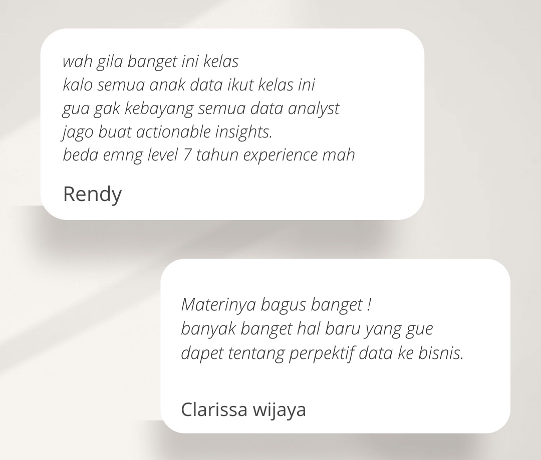 - Lu akan lebih Cepat dan Paham cara melakukan analisis data dan menemukan insight mahal buat bisnis.